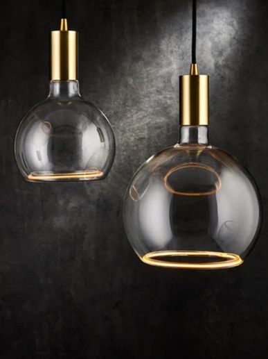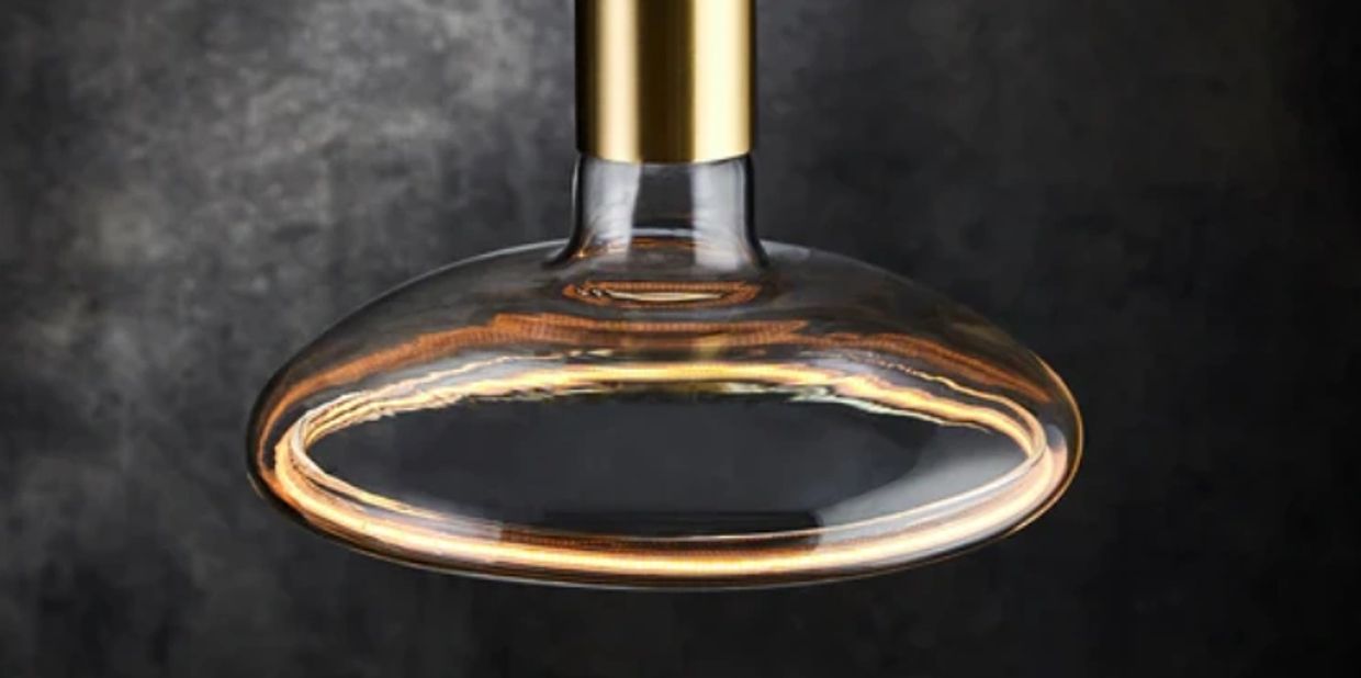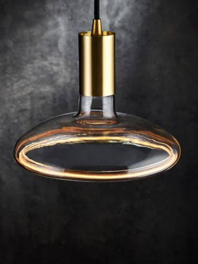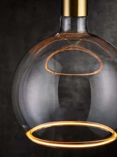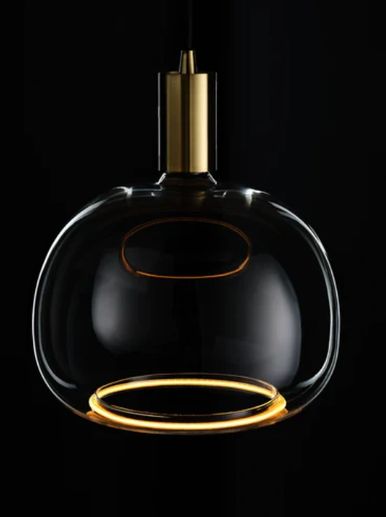 Form follows function, with faultless handmade glass and a flexible lighting filament circling the lower edge.